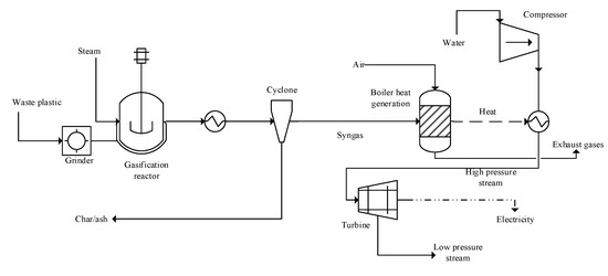 - Saebea, D.; Ruengrit, P.; Arpornwichanop, A.; Patcharavorachot, Y. Gasification of plastic waste for synthesis gas production. Energy Rep. 2020, 6, 202–207. [Google Scholar] [CrossRef]