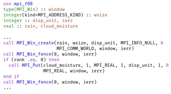 The example above could be done with an MPI_Put. A code snippet showing the equivalent method with one-sided MPI communication is shown below Figure 3.