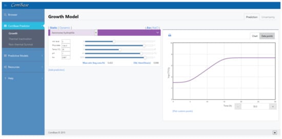 Example of ComBase Predictor (available online in www.ComBase.com, accessed on 3 March 2021).