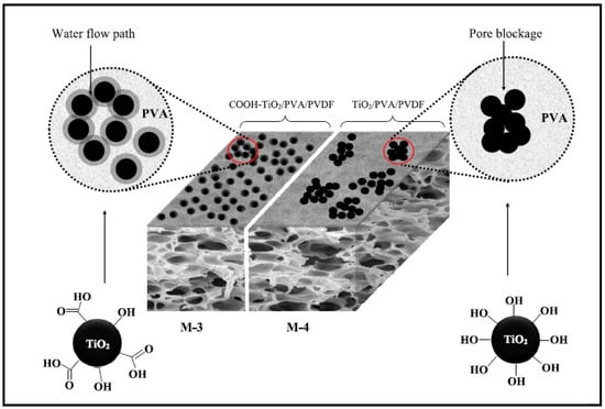 | Membrane | PVDF (wt.%) | PVA (wt.%) | PVP (wt.%) | TiO2-COOH (wt.%) | Pure TiO2 (wt.%) |