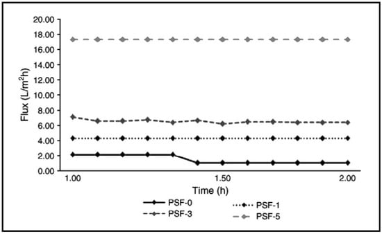 | PPSU/ZnO-NPs | Phase inversion | ZnO-NPs | 0.03 wt.% | - | - | - | - | - | 76.00–107.00 | [56] |