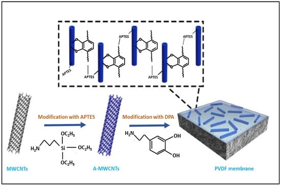 - Yang, X.; He, Y.; Zeng, G.; Chen, X.; Shi, H.; Qing, D.; Li, F.; Chen, Q. Bio-inspired method for preparation of multiwall carbon nanotubes decorated superhydrophilic poly(vinylidene fluoride) membrane for oil/water emulsion separation. Chem. Eng. J. 2017. [Google Scholar] [CrossRef]