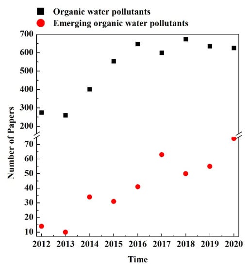 - Classical pollutants: “water purification”, “organic pollutants”