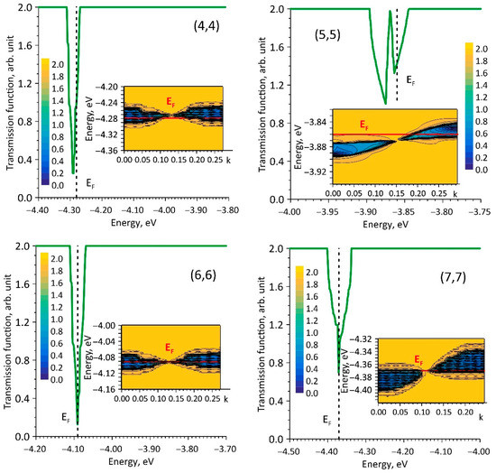 - Ghorbani-Asl, M.; Bristowe, P.D.; Koziol, K. A computational study of the quantum transport properties of a Cu-CNT composite. Phys. Chem. Chem. Phys. 2015, 17, 18273–18277. [Google Scholar] [CrossRef] [Green Version]