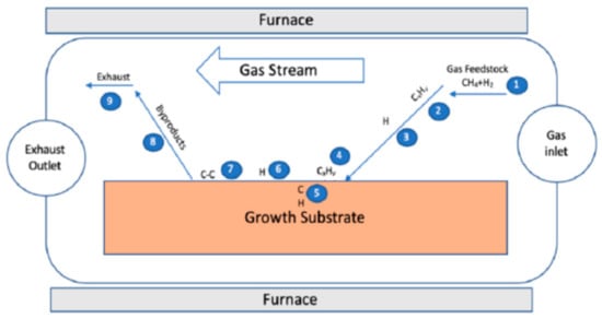 - Saeed, M.; Alshammari, Y.; Majeed, S.A.; Al-Nasrallah, E. Chemical vapour deposition of graphene—Synthesis, characterisation, and applications: A review. Molecules 2020, 25, 3856. [Google Scholar] [CrossRef]