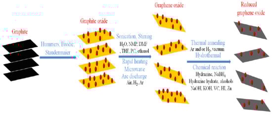- Pei, S.; Cheng, H.M. The reduction of graphene oxide. Carbon 2012, 50, 3210–3228. [Google Scholar] [CrossRef]