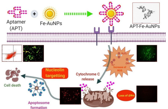 Schematic illustration of nucleolin targeted delivery of APT-FE-AuNPs to improve cytotoxicity in cancer cells [98].