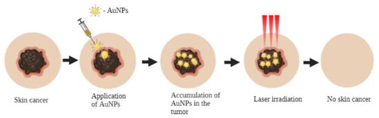 Gold is already used as a therapeutic method in nanomedicine, with colloidal gold, covalently linked to adenovirus vectors, used to selectively target cancer and induce hyperthermia by near-infrared (NIR) laser radiation. Moreover, gold nanoparticles have several advantages that make them suitable for photothermal cancer treatments [134,135]: