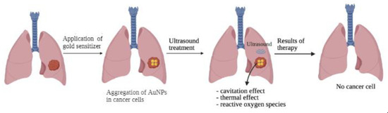 In recent years, scientists have widely explored various approaches in cancer therapy based on the action of ultrasound waves on the tumor [141]. There are a few studies on the use of ultrasound techniques in cancer control [142,143]. The therapeutic effect of ultrasound is based on its interaction with tissues, causing some biological effects [142].