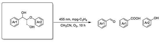 - Zhang, J. Conversion of Lignin Models by Photoredox Catalysis. ChemSusChem 2018, 11, 3071–3080. [Google Scholar] [CrossRef]