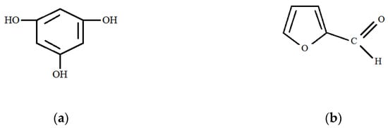 Structural formula: (a) 1,3,5-trioxybenzene; (b) 2-furaldehyde.