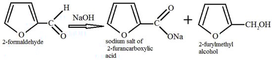 From the literature [] it is known that 2-furaldehyde enters into a disproportionation reaction in an alkaline medium according to the Cannizzaro reaction (Figure 2.) with the formation of two reaction products, sodium salt of 2-furancarboxylic acid and 2-furyl methyl alcohol.