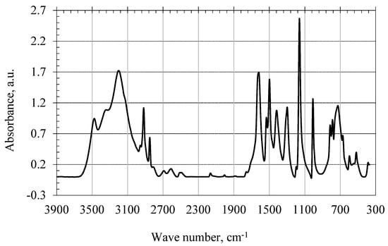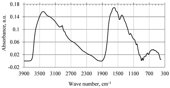 The acquisition of IR spectra was carried out on a VERTEX 70 Fourier-IR spectrometer (manufactured by Bruker Optik GmbH, Ettlingen, Germany) at the Center for High Technologies of BSTU named after V.G. Shukhov. For preparation of the studied samples, especially pure potassium bromide, which is absolutely transparent to IR radiation, was used. The test sample was mixed with potassium bromide, thoroughly ground, and the disks were pressed under a pressure of 7 tons prior to recording their IR spectra. The IR spectra of the investigated substances were recorded in the range from 400 to 3900 cm−1.
