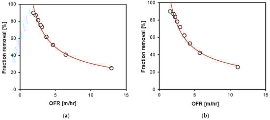 Fraction removal with OFR after EC process for (a) turbidity and (b) color.