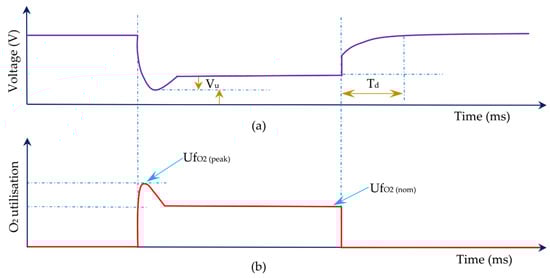 Profiles of voltage (a) and O2 utilisation (b) vs. time. Reproduced from [19] under the Creative Commons Licence.