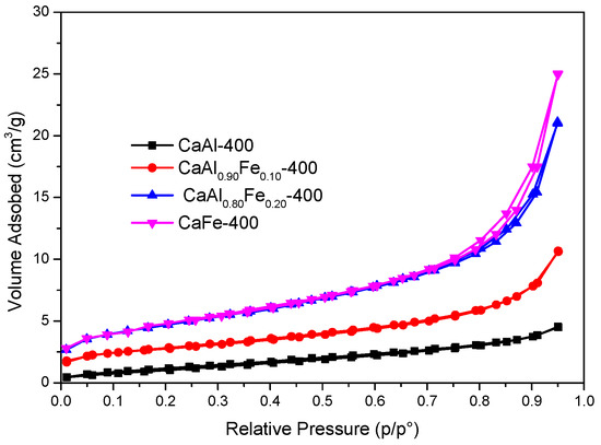 Nitrogen adsorption–desorption isotherms of samples calcined at 400 °C.