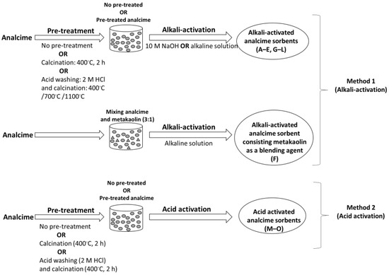 Schematic diagram of the alkali- and acid-activated analcime sorbents.