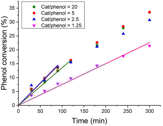 3.3.2. Effect of the Catalyst/Phenol Concentration Ratio