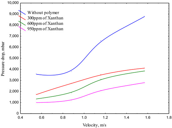 - The pressure drop reduction differed with polymer concentration, and the best dose (high concentration) resulted in a lower pressure drop that was reduced by 65% compared to that without the modified XG mixture.