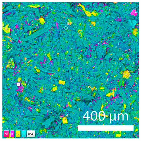 For a better understanding of the distribution of the atomic composition of wheat straw, Figure 6 presents its complete multilayer EDS map.