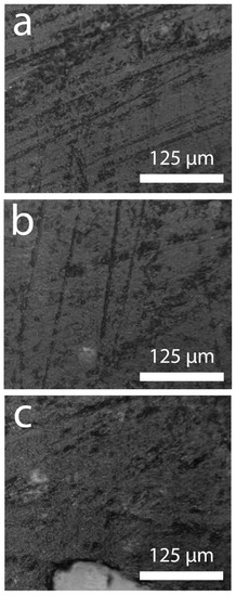 A Carl Zeiss Jena NU 2 optical microscope (Carl Zeiss, Oberkochen, Germany) was used to study the microscopic properties of the surface of the obtained composites. The microscope is designed for microscopic methods of research (petrographic analysis). It allows you to conduct research in reflected and transmitted light. The maximum magnification was ×1250. The samples were preliminarily ground using the grinding and polishing machine LaboPol-5.