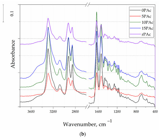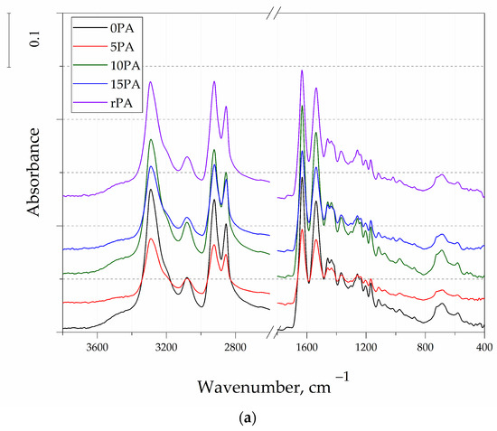 FTIR spectra of tested materials (a) unconditioned PA (b) conditioned PA.