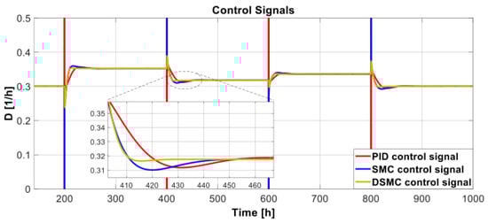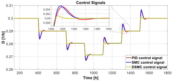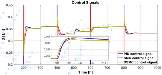 Furthermore, DSMC improved tracking and regulatory tasks by reducing half or more of the response time compared with PID and SMC controllers. Thus, the internal PID controller provides a better response to disturbances. Furthermore, DSMC remarkably balances the response speed and smoothness of the control action. Therefore, considering the incidence of the final control elements, a quick and smooth control response is attained.