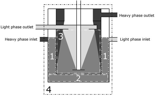 - Seyfang, B.C.; Klein, A.; Grützner, T. Extraction Centrifuges—Intensified Equipment Facilitating Modular and Flexible Plant Concepts. ChemEngineering 2019, 3, 17. [Google Scholar] [CrossRef]