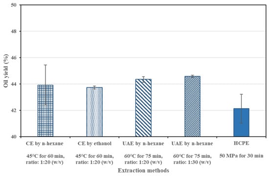 3.4. Comparison of Different Extraction Methods on Yield of the Sacha Inchi Oil (SIO)