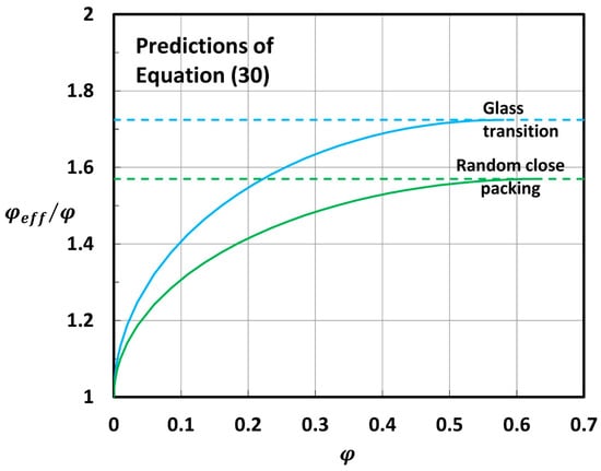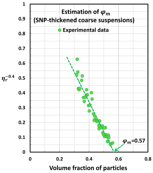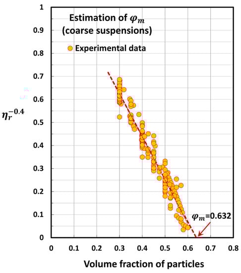According to Krieger and Dougherty [34], Equation (13) over-corrects the crowding and packing of particles. They proposed a modified version of the functional relationship, as in Equation (12), as follows:
