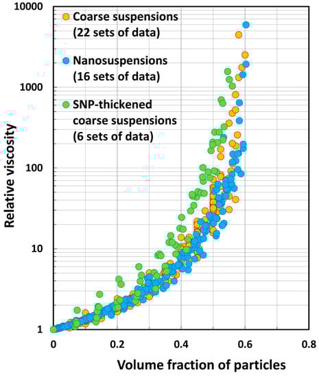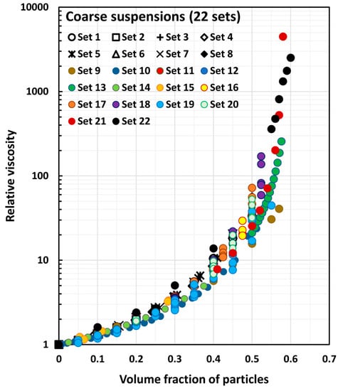 Many articles have been published on the development of viscosity models for concentrated suspensions in the twentieth century [20,23,24,25,26,27,28,31,32,34,35,36,37,38,39,40,41,44,45,50]. A good number of review articles have also been published on the subject [35,43]. Among the most popular models published in the twentieth century for the viscosity of concentrated suspensions are the Mooney and Krieger–Dougherty models discussed in the preceding section. In what follows, the relative viscosity models for concentrated suspensions published recently, in the past decade or so, are reviewed, compared, and evaluated using a large pool of experimental viscosity data available for concentrated suspensions.