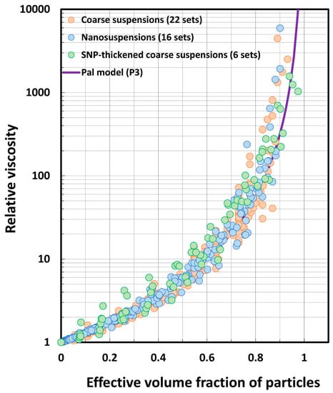 Pal [71] further modified this equation taking into consideration the clustering of particles. Thus, the actual volume fraction of particles in Equation (39) was replaced by an effective volume fraction, , given as follows (see Equation (30)):