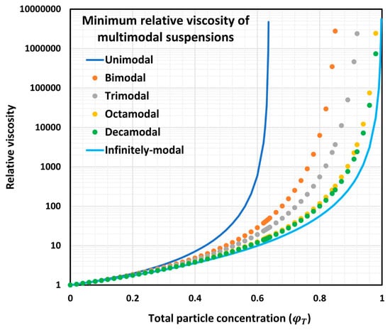 - Farris, R.J. Prediction of the viscosity of multimodal suspensions from unimodal viscosity data. J. Rheol. 1968, 12, 281–301. [Google Scholar] [CrossRef]