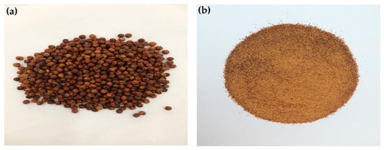 Kampot red peppercorns: (a) dried red peppercorns; (b) red pepper powder.