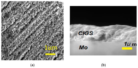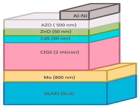 Among TFSCs, CIGS absorbers have received a significant amount of research interest due to their direct bandgap, high absorption coefficient, and relatively high solar cell efficiency. The CIGS layer is composed of chalcopyrite compounds from the group(I-III-VI)with a bandgap energy between 1.04 and 1.68 eV []. The CIGS layer can be deposited via vacuum and non-vacuum methods [,,,].