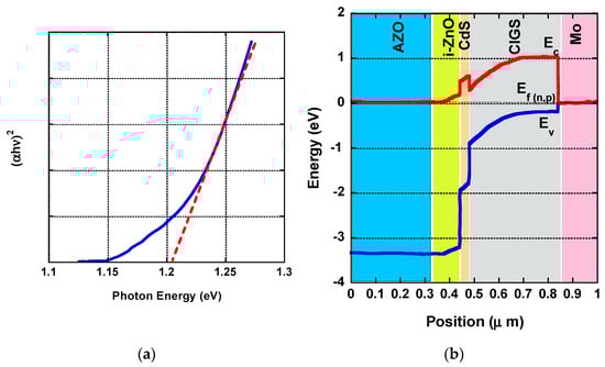 (a) Optical bandgap; (b)typical energy band diagram of CIGS-2.0 absorption layers.