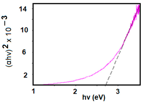 Here, h is Planck’s constant, β is a sample-structure-dependent constant, Eg is the band gap value, ϒ is an empirical indicator, which contains the corresponding values in straight and oblique transitions, and α is the absorption coefficient, and its value is obtained from the Beer–Lambert formula [13,34].