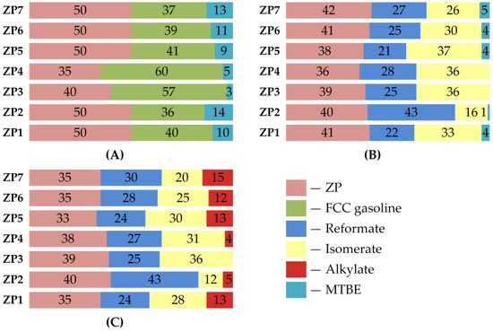| (C) Recipes with reformate, isomerate and alkylate | |||||||