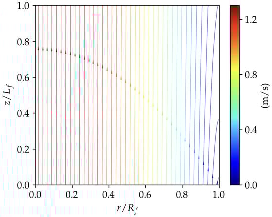 | u | fluid velocity in the r-direction of the domain (m/s) |