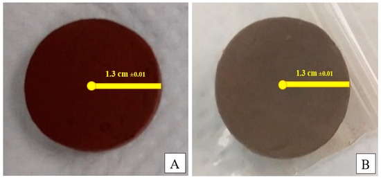 Once the paste is ready, two blocks will be presented: one will be adjusted and pressed in the form of pellets (diameter 1.3 cm ± 0.01 and thickness 0.2 cm ± 0.01). The second block will be left to rest in a humid atmosphere for two days.