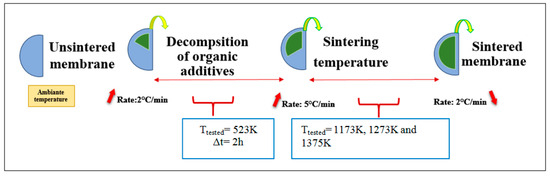 The main specific parameters of this step are essentially the final firing temperature (Tf) and sintering time [17]. The setting thermal program is shown in Figure 2.