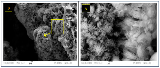 SEM micrographs of (A) hematite and (B) geothite powders [25].
