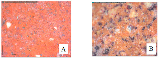 Imaging via optical microscopy of the ferric membrane (A) and clayey membrane (B).