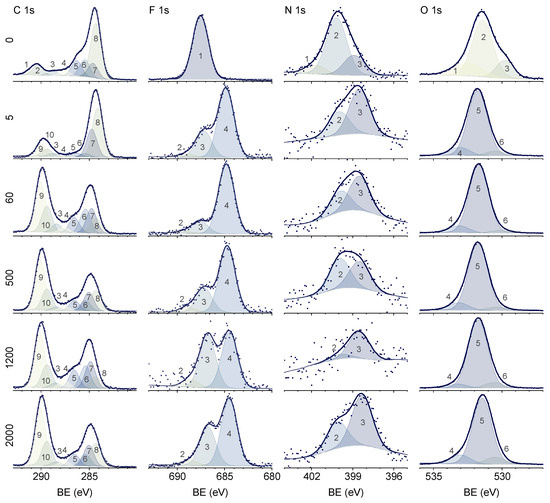 - Kassis, C.M.; Steehler, J.K.; Linton, R.W. Characterization of 1,1-Dihydroperfluorooctyl Acrylate (PFOA) by XPS. Surf. Sci. Spectra 1994, 3, 299–306. [Google Scholar] [CrossRef]