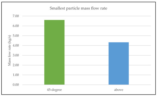 From the relative segregation rate chart in Figure 18, it can be concluded that segregation behavior in the system was reduced due to the insertion of a second baffle stage. Inserting second-stage baffles affected both the smallest and largest particle sizes, resulting in differences in the smallest and largest particle volume fractions in the system, as shown in Figure 22 and Figure 23, respectively.