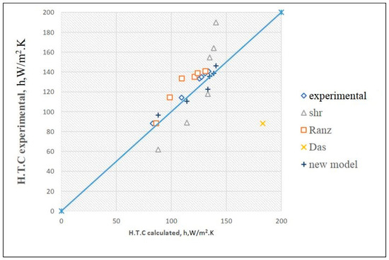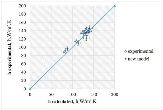 In general, the model yields reasonably accurate estimations for the heat transfer coefficients, considering the underlying assumptions and the straightforwardness of the model equation. The model provides estimations of the heat transfer coefficients with the computed values, encompassing all three particle sizes. Nevertheless, the observed percentage variations are conservative, from 1% to 10%. This implies that the current correlation reasonably accurately estimates the heat transfer coefficients under specific experimental conditions.