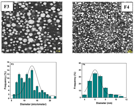 The size distribution of particles in the primary emulsion (F3 and F4) was determined through analysis of optical microscopy images.