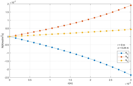 | : | Molar flux density based on stationary component coordinates j (kmol m−2 s−1) |