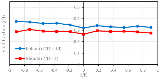 3.1. Diameter Profile of the Void Fraction with Wet Catalyst