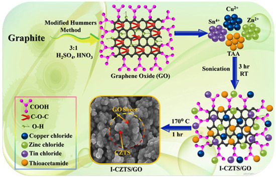 Schematic illustration of different steps for synthesis of in situ synthesized Cu2ZnSnS4 (I-CZTS)/GO composites. Reprinted from Ref. [165].